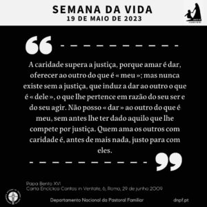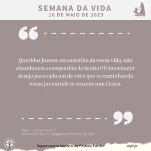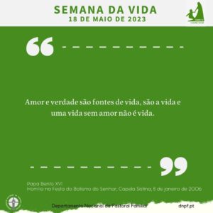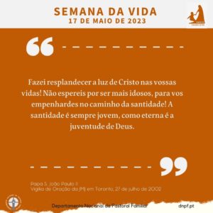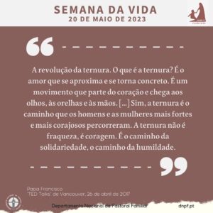 – Abertura da Semana da Vida com a Recitação do Terço na Capelinha das Aparições em Fátima, no dia 14.mai.2023 às 18:30, com condução do DNPF, aberto à participação de todas as famílias;